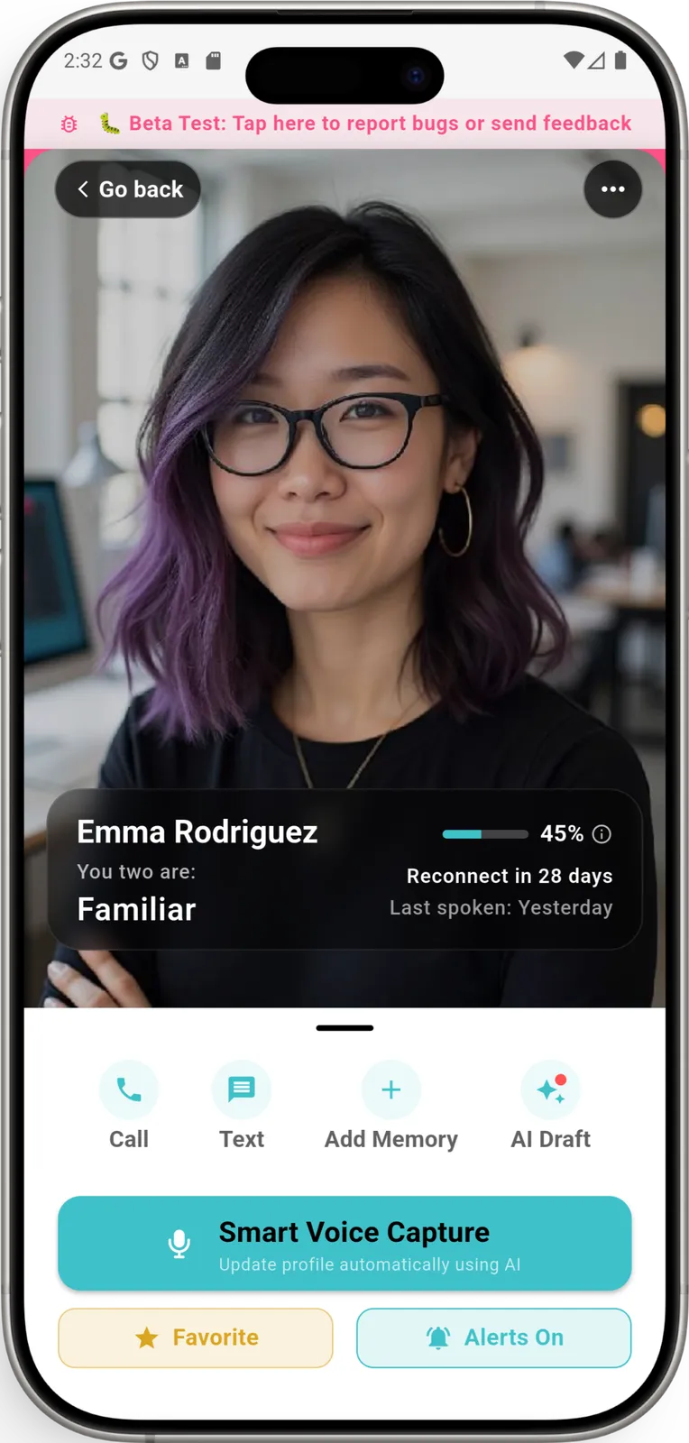 The people you care about are more than contacts. Mutuality helps you remember their favorite coffee, their dog's name, and the little details that matter.